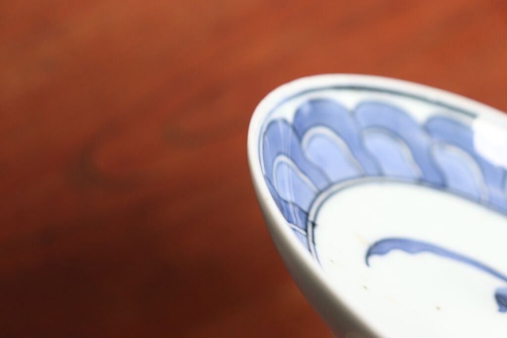 - 美術品・アンティーク・コレクション > 工芸品 > 江戸中期 藍九谷 鯛の図皿 5客 トヒル 木箱付 東さ7-0809☆2F 江戸中期藍九谷水車と蓮弁文5寸皿 ④ニュウ | 吉祥寺PukuPuku