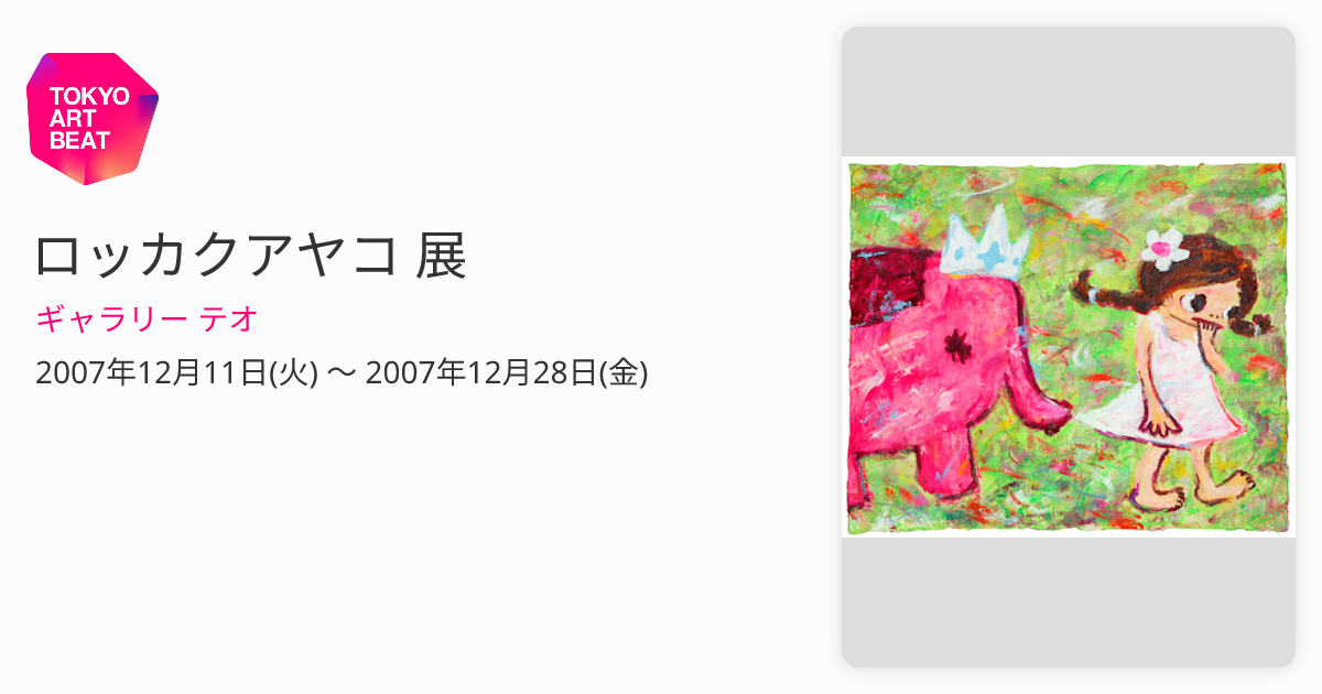 ロッカクアヤコ展 リーフレット 2007年 ギャラリー紅屋 ギャルリーテオ ロッカクアヤコ 展 (ギャラリー テオ) |Tokyo Art Beat