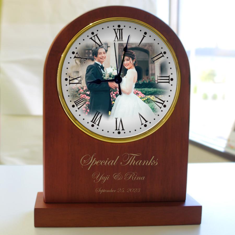 ハートの愛らしい鐘 ヴィンテージ品 ブロンズ製 2個セット 結婚 ウエディング アーチ型木製置時計 メモリアルウェディング 写真 時計 オーダーメイド