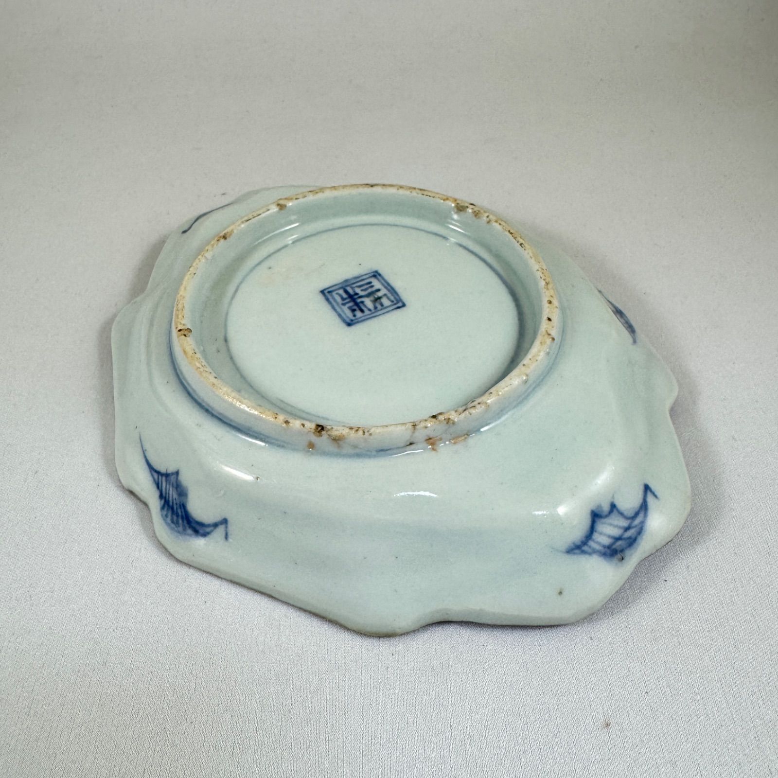 | 商品の特徴 | 本物保証❗】江戸前期 初期伊万里~ 藍九谷過渡期 ハートに白抜文15.2。本物保証❗】江戸前期 初期伊万里~ 藍九谷過渡期 ハートに白抜文15.2。本物保証❗】江戸前期 初期伊万里~ 藍九谷過渡期 ハートに白抜文15.2。初期伊万里◇染付山水文皿◇古伊万里◇藍九谷◇江戸時代◇有田焼。【本物保証❗】【珍品❗】江戸時代前期 初期伊万里~藍古九谷過渡期 ハートに白抜き唐草文様 最大径15.2cm 変形皿です珍品の 1650年~1670年にかけての初期伊万里~藍古九谷様式の過渡期の 薄ダミに 良質の濃い呉須をもちいて 呉須の濃淡を表現しています! 白抜き唐草文様は墨弾技法の初期のものです口縁廻りには 七宝繋ぎ文様が 描かれておりますが 呉須の流れがこざいますしかし【三方割】の造りに ハートの意匠 …実に珍しい 藍古九谷様式の 作品です!お皿の裏には 笹の図と考えます高台内側には 初期伊万里~藍古九谷様式の上作品に多い窯印です! なかなかない印譜です!技術が乏しく 窯の中でできた窯疵がございます(画像の17・18枚目)後年の傷ではこざいませんその他は 良好です!時代古作品につき ご了承ください!最大径 約15.2cm 高さ 約3.1cmお箱はございません ご了承ください!お値下げしました❗58,000円→44,000円お値下げしました❗44,000円→39,000円NO.B220316151007NOR1TTR1/2VWK→3B/R2.T2.URA.#初期伊万里 #江戸時代前期 #古伊万里#藍九谷 #伊万里 #変形皿 #李朝 #李参平 #李朝青花 #李朝白磁 #李朝皿 #李朝堅手 #古九谷 #再興九谷 #姫谷焼 #藍九谷様式 #1650年 #ハート文様 #唐草文様 #墨弾き #白抜き#七宝繋ぎ文様 #笹 #竹 #名品 #珍品#藍古九谷様式 #藍古九谷ご覧いただきありがとうございます | ||
