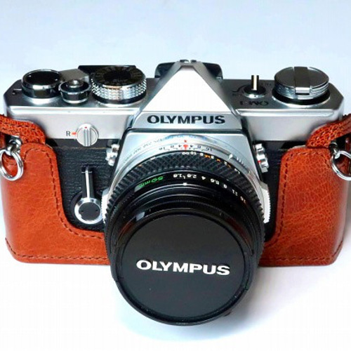 - カメラ > フィルムカメラ > ★ OLYMPUS OM-1 (革ケース付)+ ★ 標準レンズ 50mm オリンパス OM-1,OM-2用 カメラケース 本革 ブラウン #125 カメラ